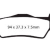 EBC’s sintered pads deliver a much stronger initial bite than organic pads due to their high coefficient of friction and will last much longer thanks to their almost entirely metal construction. Unlike many sintered pads, Double-Hs do not contain any iron powder, eliminating the chance of a pad welding itself to the disc under corrosion.
