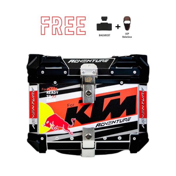 LGP Premium Aluminium KTM Graphics 45 Litres Top Box – Free Backrest and Balaclava